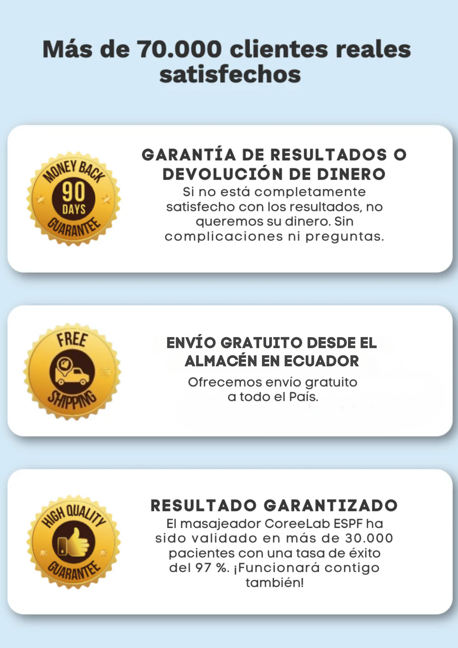 Por eso ofrecemos una garantía de 90 días: “Resultados o te devolvemos tu dinero”. Solo tienes que adquirir el masajeador hoy, usarlo durante 90 días y evaluar los resultados.